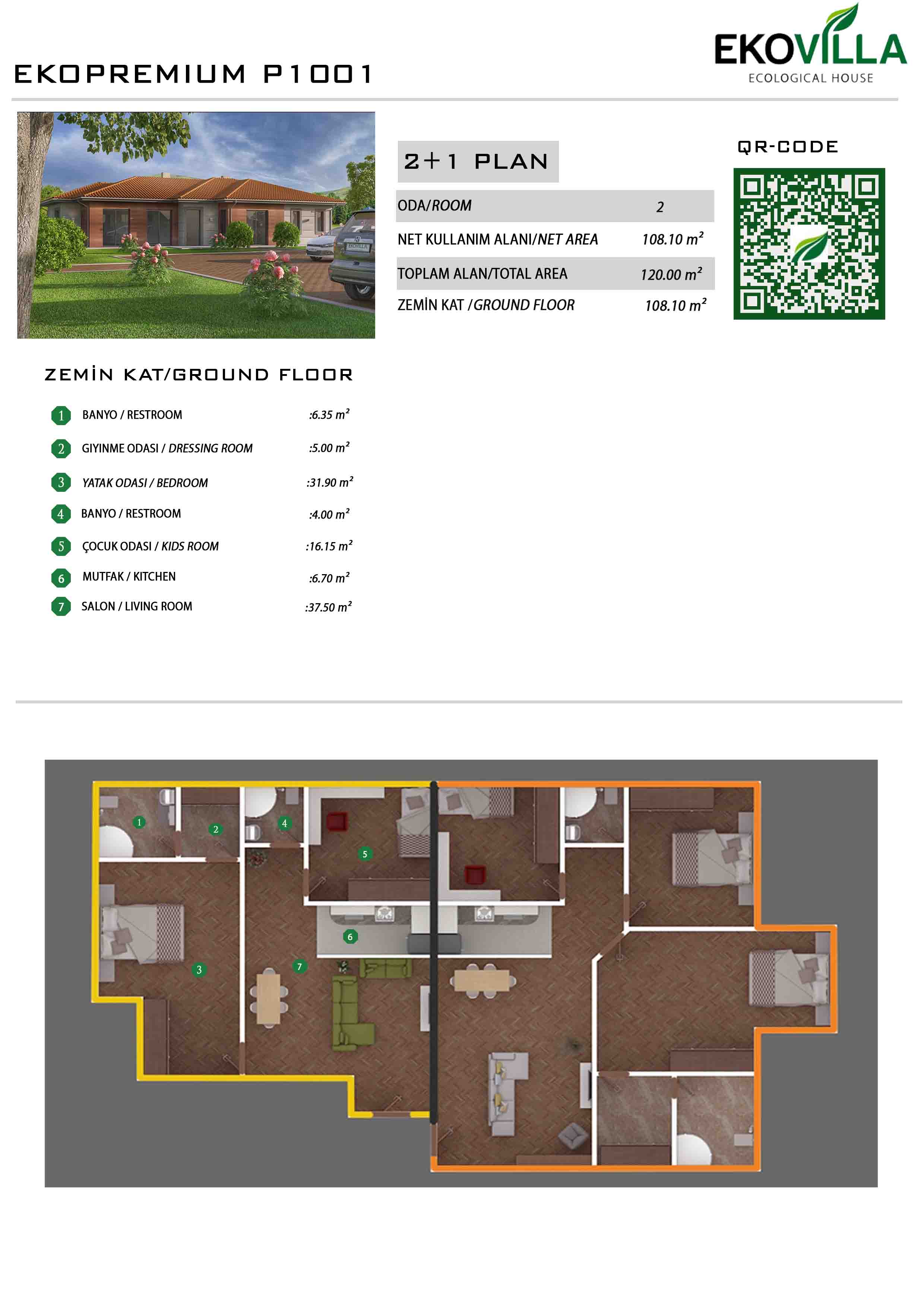 • Zemin Kat 108,10 m2