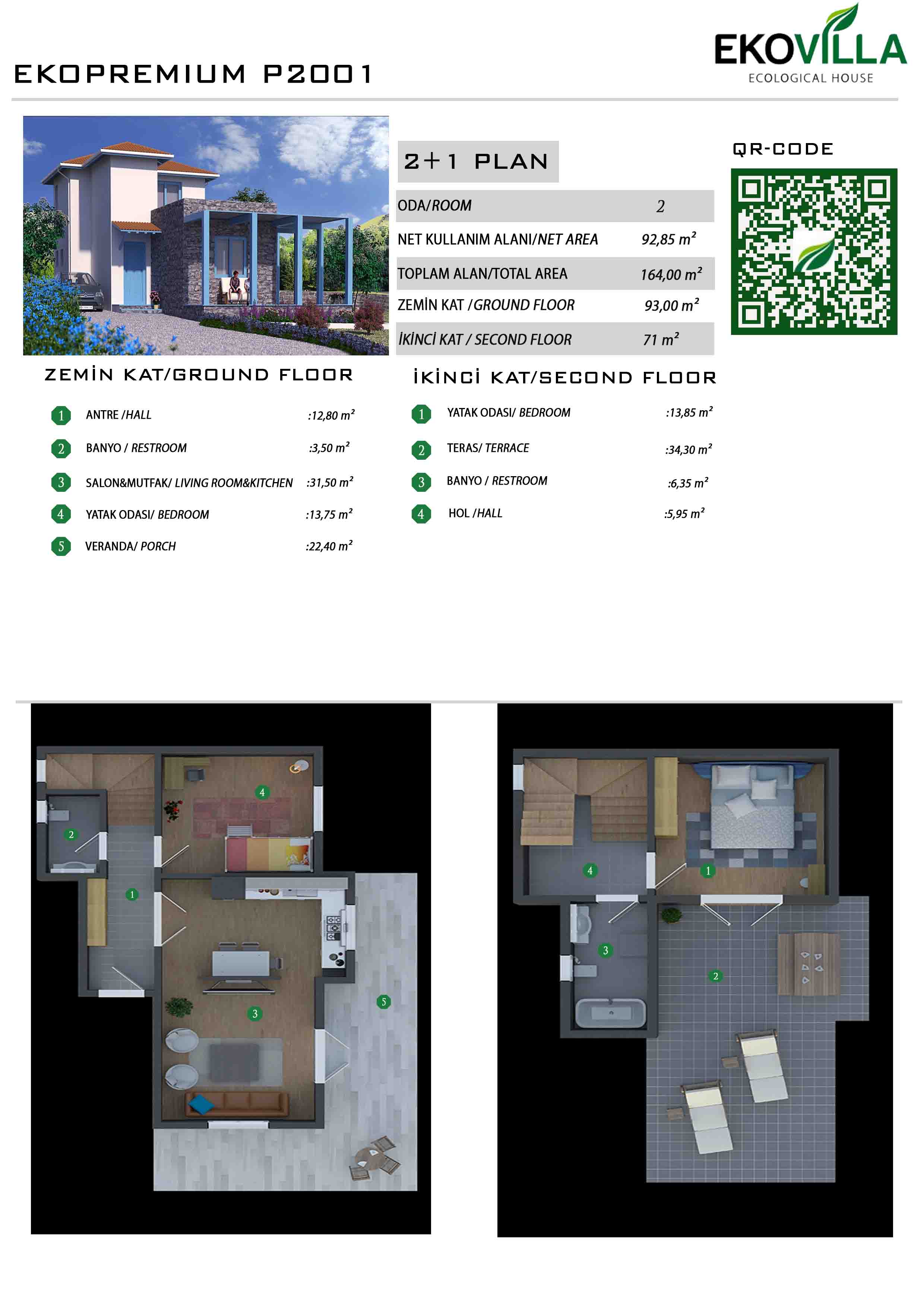 • Net Kullanım Alanı 92,85 m2