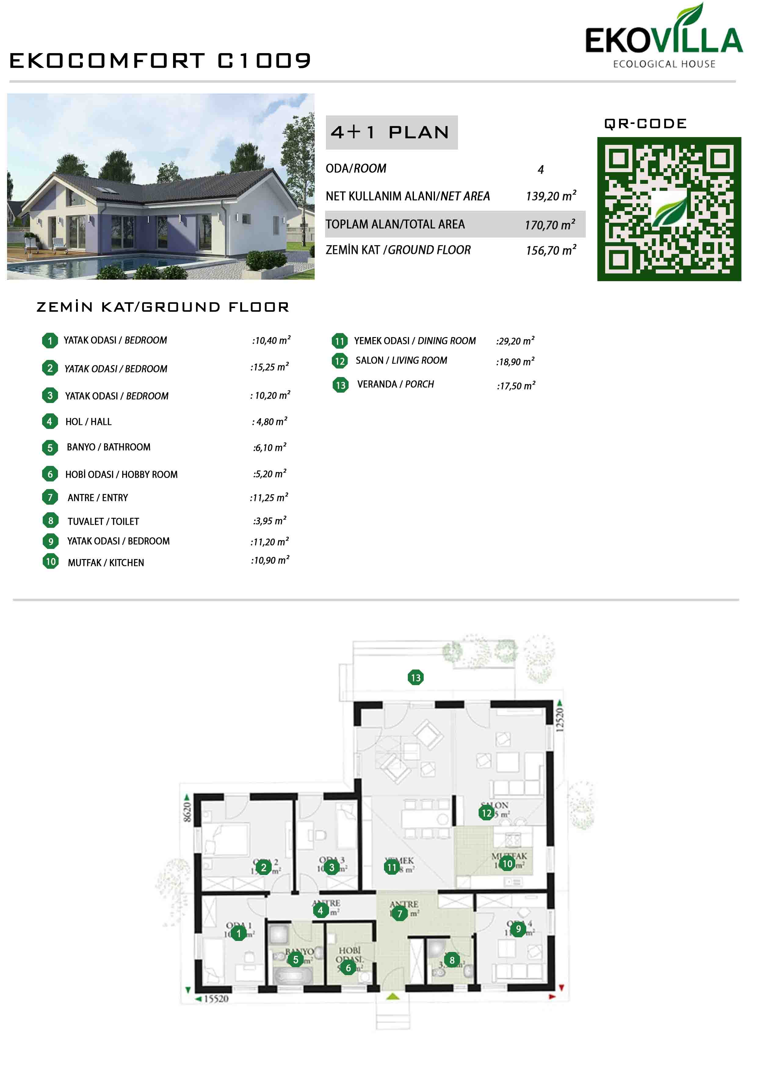 • Zemin Kat 170,70 m2