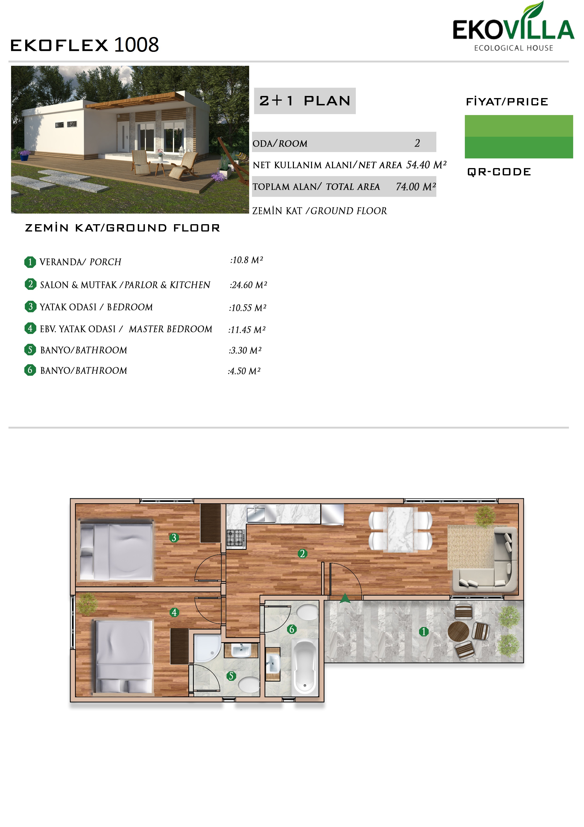 • Toplam Alan 73 m2